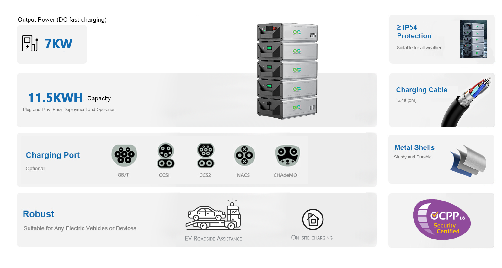 11.5kWh丨7kW | 支持 CCS1/CCS2 | 直流输出DC220V-530V