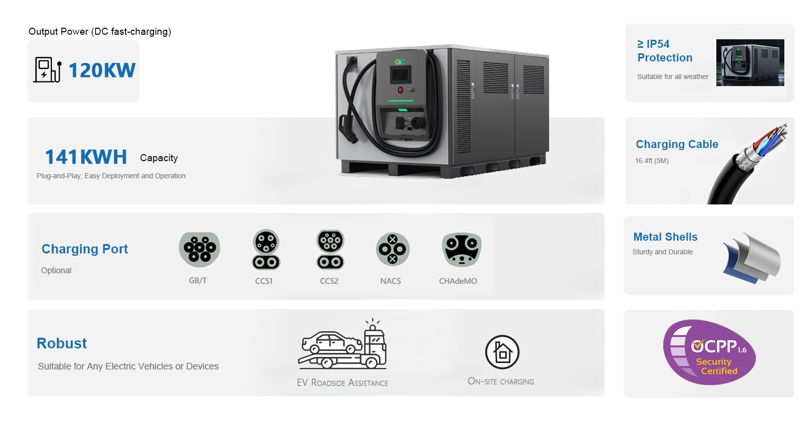 141kWh丨120kW | 支持 CCS1/CCS2 | 直流输入 200A